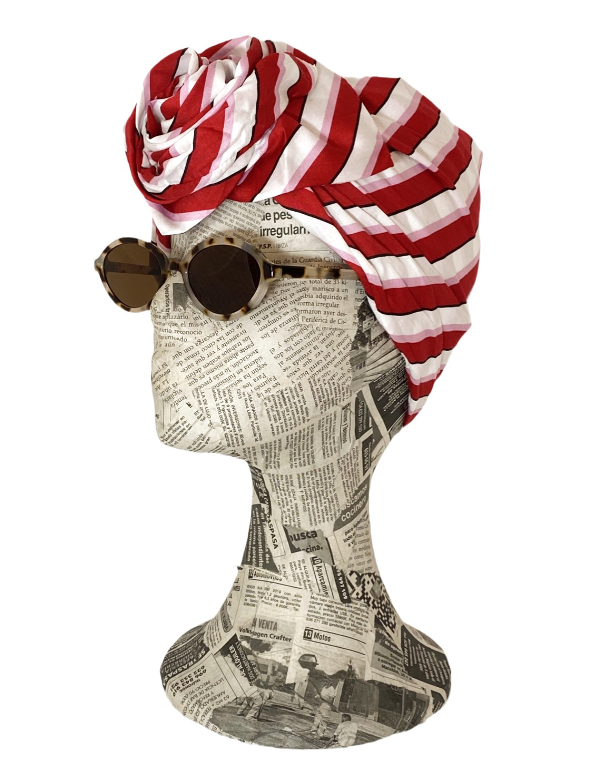 Turbante con alambre integrado. Un imprescindible de la firma Equilibre. El alambre permite moldearlo de distintas maneras y para distintos usos (foulard para la cabeza moldeado a gusto de cada persona, top, faja/cinturón, faldita cubre bañador).